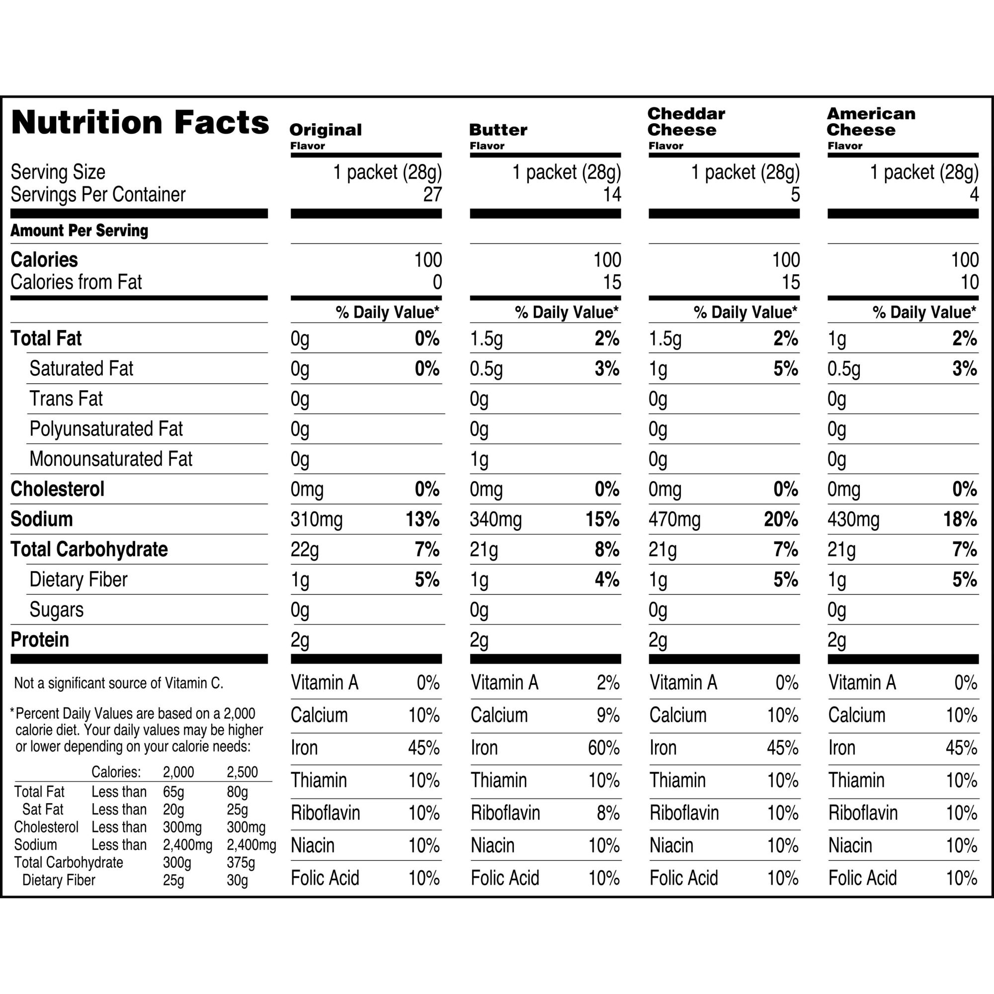 Quaker instant grits nutrition label