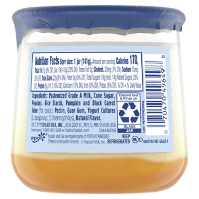 Yoplait Oui Yogurt, French Style, Peach: Calories, Nutrition ...