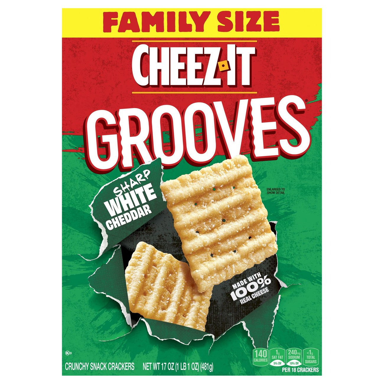 Cheez-It Grooves® Sharp White Cheddar - Kellogg's About this item: Details Nutrition Facts & Ingredients Where To Buy Highlights Cheez-It® Grooves® bring you deep flavor and deep crunch, with huge white cheddar grooves. Cheez-It® Grooves® Sharp White Cheddar crispy snack crackers are made with 100% real cheese to bring you that irresistibly cheesy, sharp white cheddar flavor!