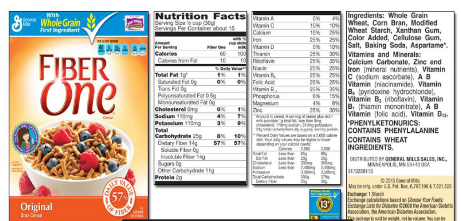 Marketing Exam 2 Flashcards | Quizlet Fiber One puts the number of grams of fiber and the amount of sugar on the label of its cereal box. Fiber One wants customers to know that its cereal is healthy and not loaded with sugar. Fiber One's label is an example of _______ informational labeling